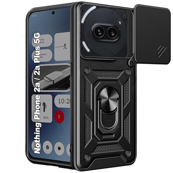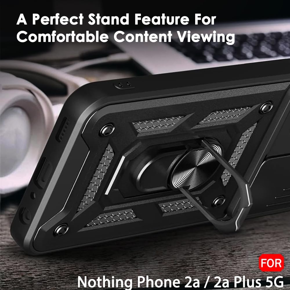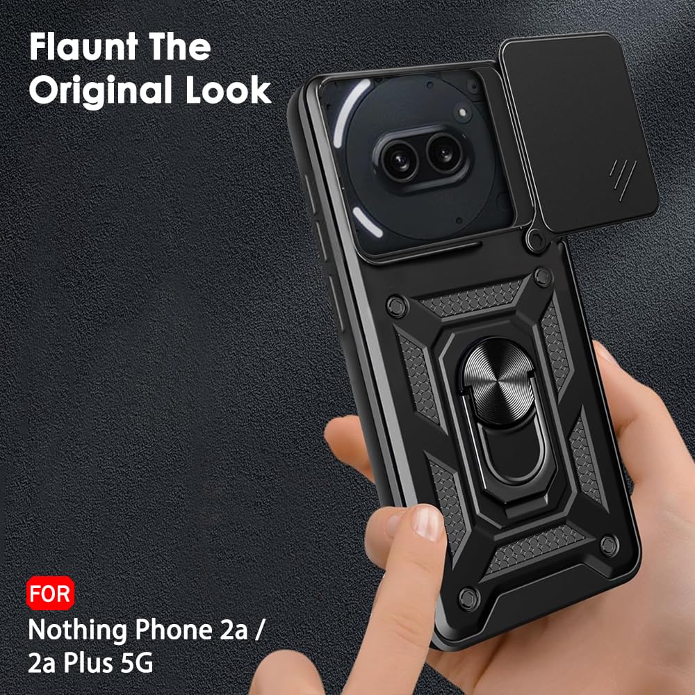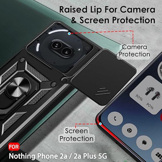 SNP-Armor Bumper Back Cover Case for Nothing Phone 2a / 2a Plus 5G | Sliding Camera Cover, Kickstand & Ring Holder | 360° Protection Back Cover for Nothing Phone 2a 5G (PC & TPU, Black)