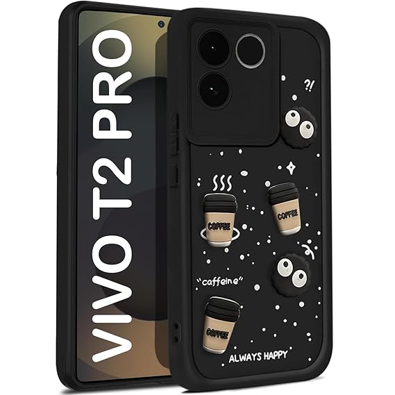 SNP- Back Case Cover Compatible for iQOO Z7 Pro (5G) / Vivo T2 Pro (5G) | Cute Fun Cartoon 3D Ball | Coffee Silicone Case | Camera Protection | Body Protection | Shock Proof | Color BLACK