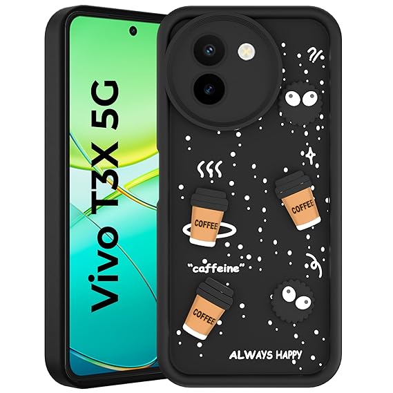 SNP- Back Case Cover Compatible for Vivo T3x (5G) | Cute Fun Cartoon 3D Ball | Coffee Silicone Case | Camera Protection | Body Protection | Shock Proof | Color BLACKSNP- Back Case Cover Compatible for Vivo T3x (5G) | Cute Fun Cartoon 3D Ball | Coffee Silicone Case | Camera Protection | Body Protection | Shock Proof | Color BLACK