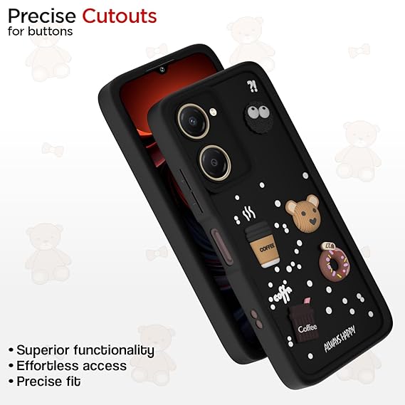 SNP- Back Cover for iQOO Z9 Lite 5G / Vivo T3 Lite 5G / Vivo Y18 / Y18e / Y03 | 3D Cartoon Cute Fun Bear | Silicone Full Body Protection Bumper Case (BLACK)SNP- Back Cover for iQOO Z9 Lite 5G / Vivo T3 Lite 5G / Vivo Y18 / Y18e / Y03 | 3D Cartoon Cute Fun Bear | Silicone Full Body Protection Bumper Case (BLACK)