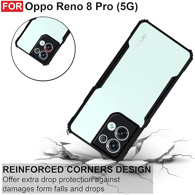SNP- Back Cover for Oppo Reno 8 Pro 5G Mobile Back Case Shock Proof Design Camera Edges Protection Crystal Clear Phone Case Precise Cutouts Matte Black Soft Bumper Phone Cover