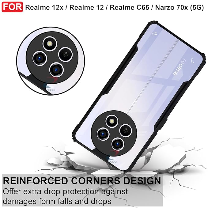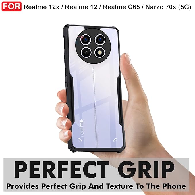 SNP- Back Cover for Realme 12 | 12X | Narzo 70X Mobile Back Case Shock Proof Design Camera Edges Protection Crystal Clear Phone Case Precise Cutouts Matte Black Soft Bumper Phone Cover