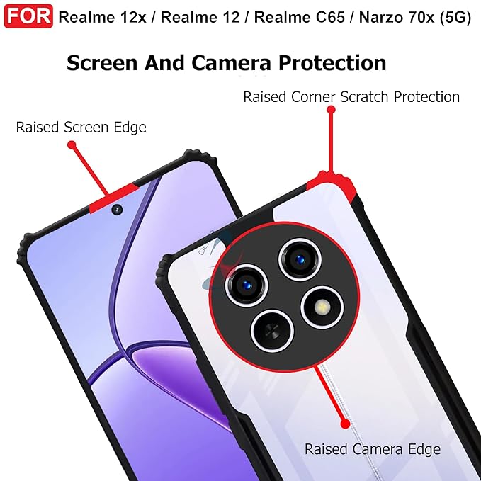 【Compatible with Realme 12 | 12X | Narzo 70X 】 – Designed specifically for Realme 12 | 12X | Narzo 70X , ensuring a precise fit with easy access to all buttons, ports, and camera functions. Not Compatible Realme Narzo 70 and Realme 12 Pro
