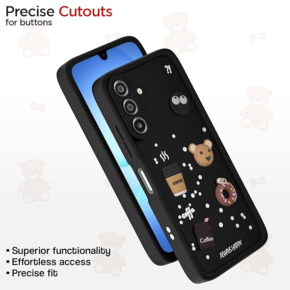 SNP- Back Cover for Samsung Galaxy A17 5G | Cute Fun 3D Cartoon, Coffee Design Silicone Case | Full Body Protection Bumper Case for Samsung Galaxy A17 5G (BLACK)