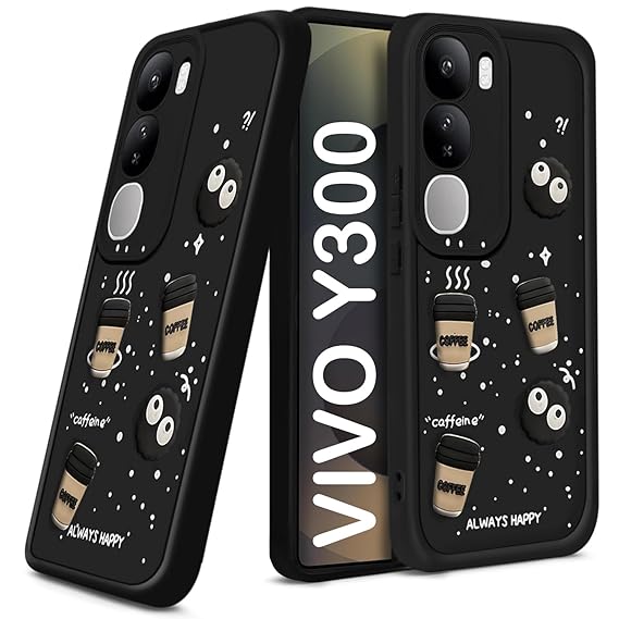 SNP- Coffee Case for Vivo Y300 5G | Cute 3D Cartoon Ball Design | Soft Silicone Back Cover for Vivo Y300 5G| Full Body & Camera Protection | BLACK