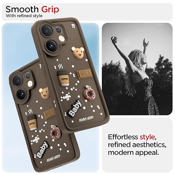 SNP- Cover for vivo V60 5G | Cute Fun 3D Cartoon, Coffee Design Silicone Case | Full Body Protection Bumper Case (Brown)
