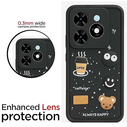 SNP- Cute Fun Ball | Taddy Cartoon 3D Smiley Coffee | Milk Case | Full Camera Protection Back Cover Compatible for Tecno BG6 / Spark Go 2024 - BLACKSNP- Cute Fun Ball | Taddy Cartoon 3D Smiley Coffee | Milk Case | Full Camera Protection Back Cover Compatible for Tecno BG6 / Spark Go 2024 – BLACK