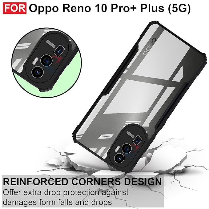 Looks : The Shockproof cover for Oppo Reno 10 Pro Plus 5G provides elegant look to your phone the back side of the cover is transparent which protect your phone from scratches where as the raised sides protect it from falls.