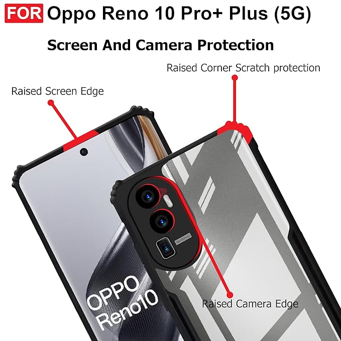 Protection : Oppo Reno 10 Pro Plus 5G Case provide best in class protection to your expensive phone with raised sides that protects it from falls and TPU Transparent back which provides it from scratches and damages.