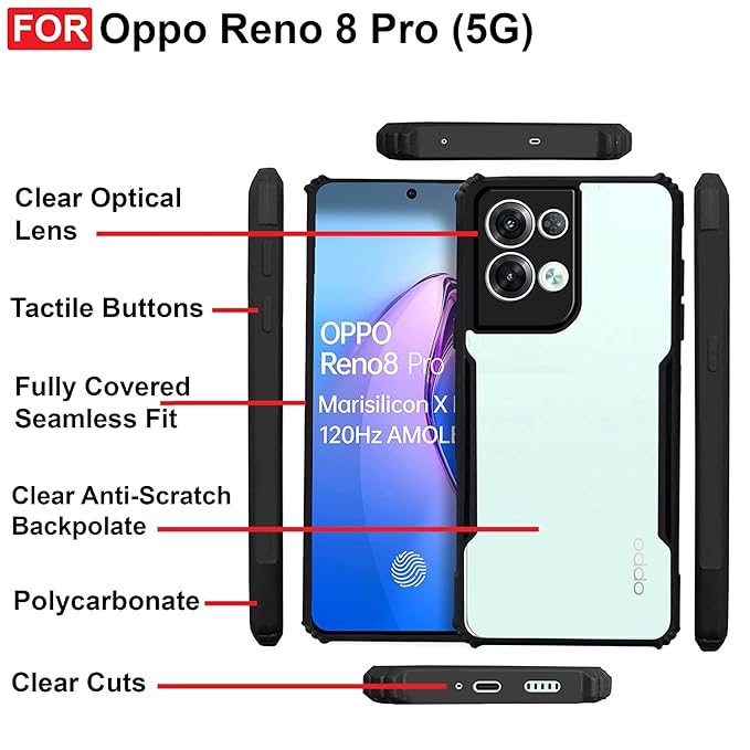 SNP-Oppo Reno 8 Pro (5G) Back Case Cover | Camera Protection Shockproof Bumper-Edge | Acrylic Crystal Clear 360 Degree Protection TPU+PC | Transparent Eagle Back Case Cover (Black)