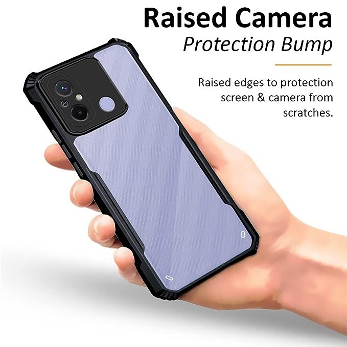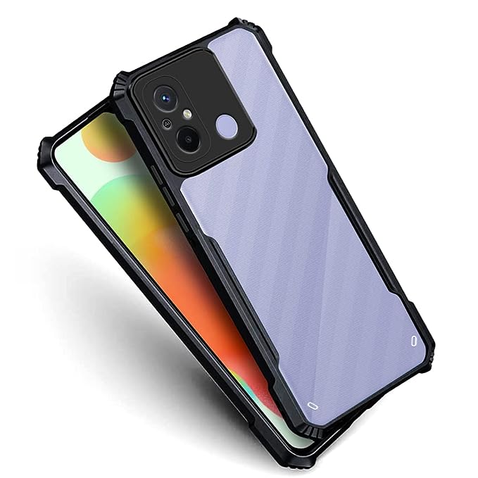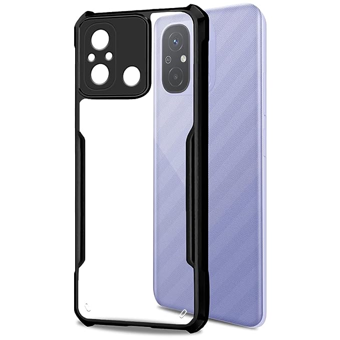 SNP- Poco C55 (4G) Back Case Cover | Camera Protection Shockproof Bumper-Edge | Acrylic Crystal Clear 360 Degree Protection TPU+PC | Transparent Eagle Back Case Cover (Black)