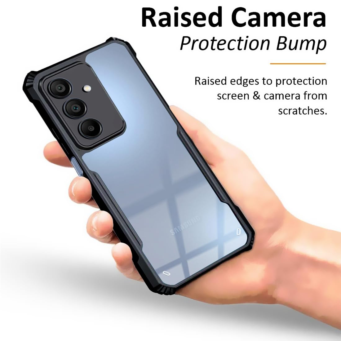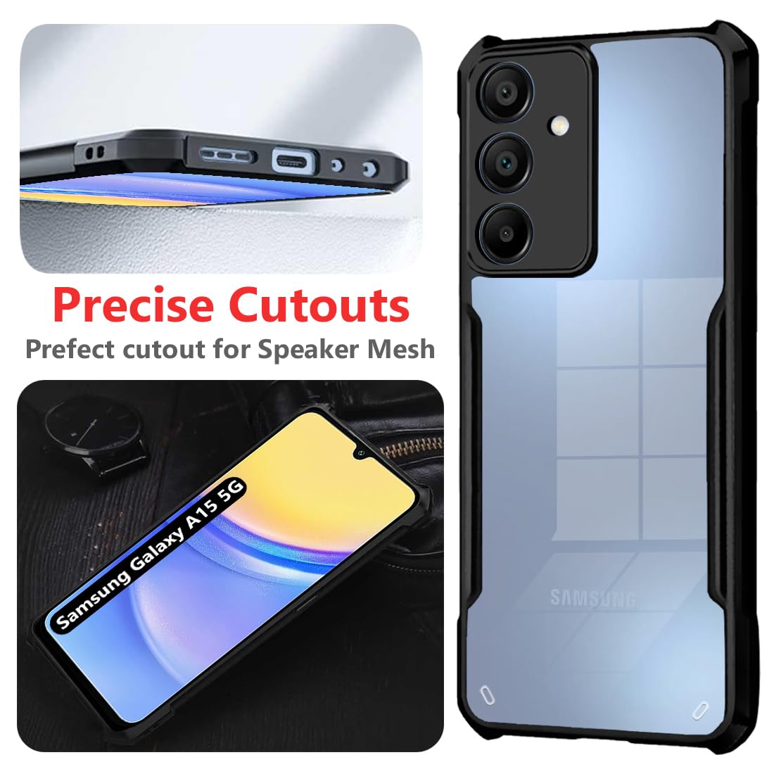 SNP-  Samsung Galaxy A15 5G Back Cover | Crystal Clear Transparent Back | Ultra Hyrbid | Full Camera Protection | Raised Edge | Bumper Back Case (Black)SNP- Samsung Galaxy A15 5G Back Cover | Crystal Clear Transparent Back | Ultra Hyrbid | Full Camera Protection | Raised Edge | Bumper Back Case (Black)