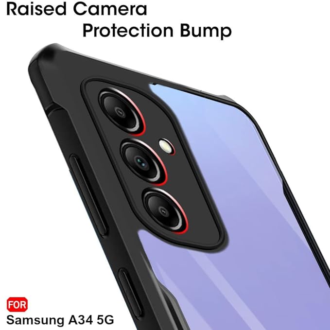 • Looks : The Shockproof cover for Samsung Galaxy A34 5G provides elegant look to your phone the back side of the cover is transparent which protect your phone from scratches where as the raised sides protect it from falls.